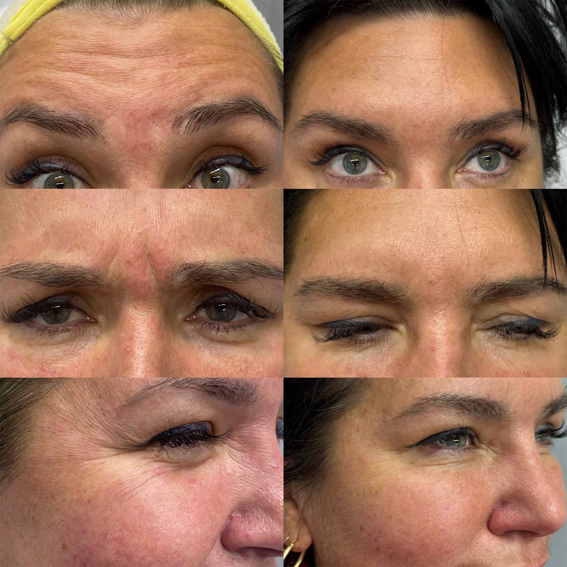 Поверхностные морщины ("Кольца Венеры", межбровная складка, морщины лба)